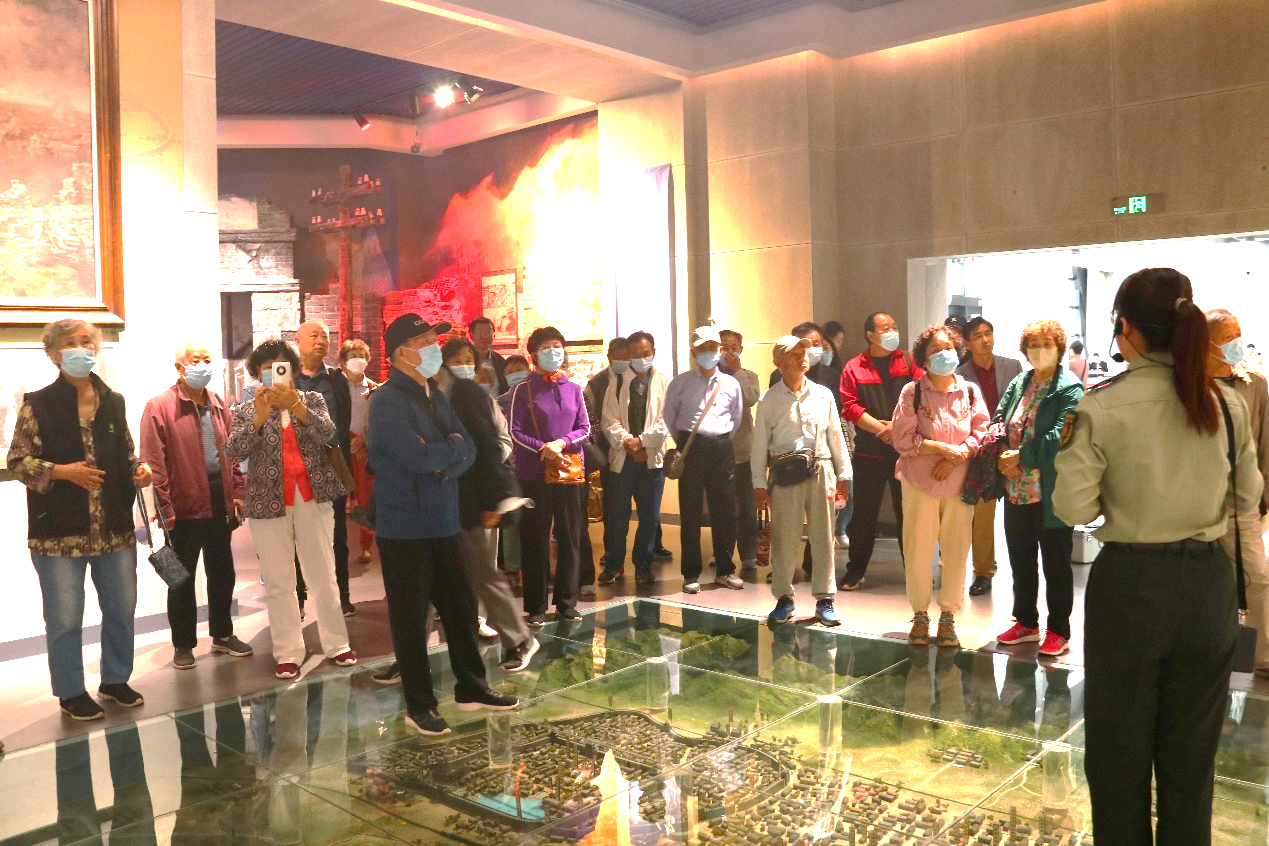 在陳列館內,全體人員跟隨講解員參觀“齊魯御寇 血鑄長城”“向北發展 向南防御”“雄獅百萬 轉戰全國”“北上南下 開辟新區”“保家衛國 不辱使命”“集體轉業 再立新功”“沙海女兵 戈壁母親”7個展廳,聆聽數以百萬計的山東子弟兵為民族解放、家國安寧而血戰沙場的英勇事跡。